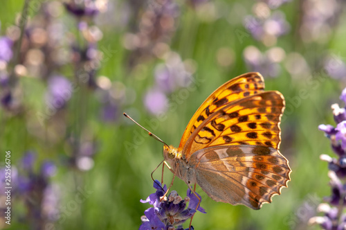 © diwali, Obraz premium Papilio Argynnis paphia on lavender angustifolia, lavandula