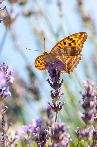 © diwali, Obraz premium Papilio Argynnis paphia on lavender angustifolia, lavandula