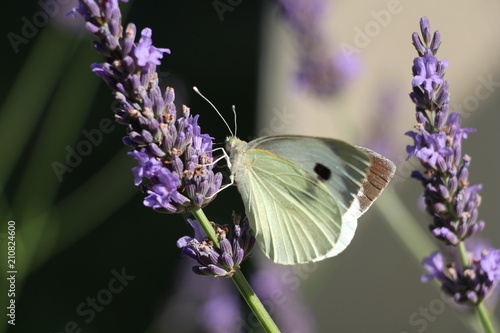© Delphine, Naklejka premium Papillon blanc sur brin de lavande macro