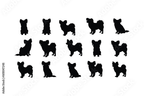© Khalid, Naklejka premium Papillon dog silhouettes various poses black white