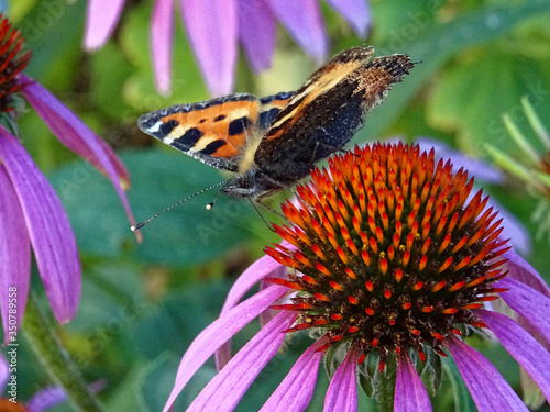 © CenedraBarak, Obraz premium Papillon multicolore et fleur violette