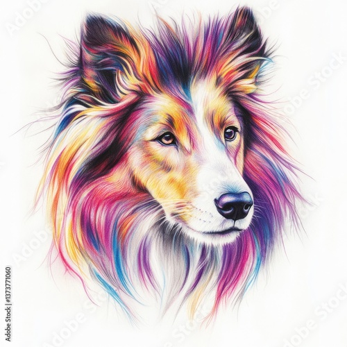 © Maryna, Naklejka premium Papre. Dog Collie Pet Animal Illustration with Multicolored Pencils