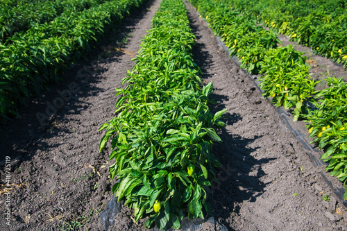 © SGr, Naklejka premium Paprika bushes growing in the field