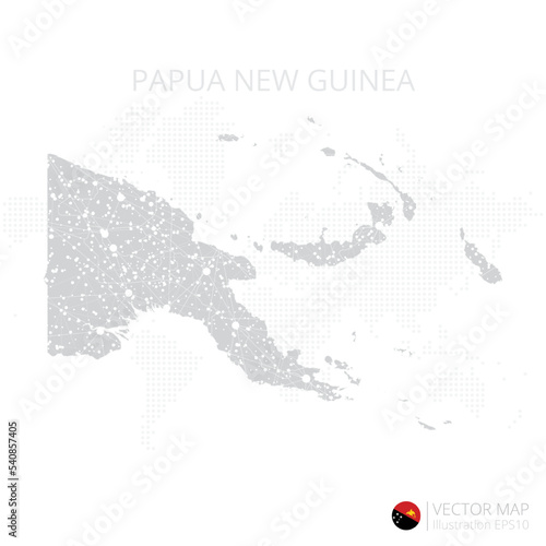 © AS_Wdrs, Naklejka premium Papua New Guinea grey map isolated on white background with abstract mesh line and point scales. Vector illustration eps 10