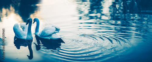 © peterzayda, Obraz premium Para białych łabędzi w miłości