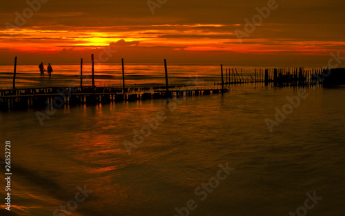 © sitriel, Fototapeta premium Para obserwująca zachód słońca nad morzem