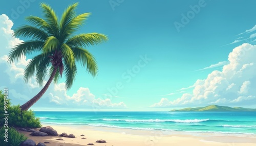© SwathiFX, Obraz premium Paradise Found A serene beach scene under a clear sky