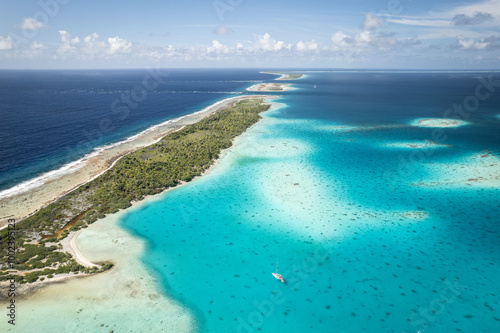© Theocerbo, Obraz premium Paradise found - Aerial view of an atoll pass in French Polynesia