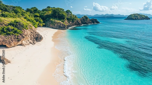 © Hussain, Obraz premium Paradise found Turquoise waters meet pristine sands inviting tranquility and escape along Caribbean shores aerial view