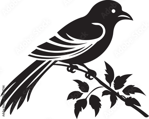Obraz premium Paradise Plumage Elegance: Perched on Branch Vector Icon Design Whimsical Avian Delight: Tropical Bird Black Logo Vector