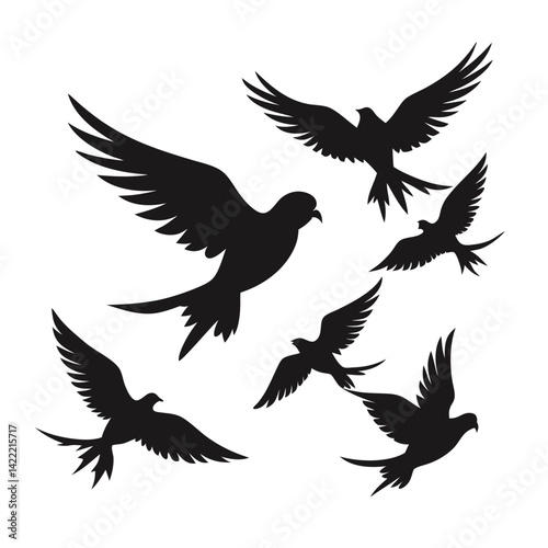 Fototapeta premium Parakeet birds flying in the sky shilhotee vector isolated on white background
