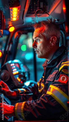 © spyrakot, Obraz premium Paramedic En Route: Emergency Medical Response in Action with Flashing Lights