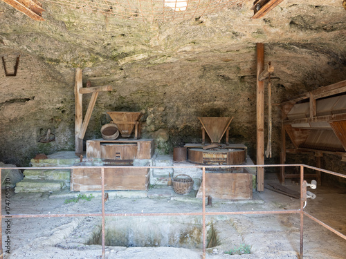 Obraz premium Parco naturale dei Mulini, public park with hot springs and dismantled system...