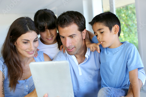 Fototapeta premium Parents and children using electronic tablet at home