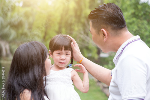 © WONG SZE FEI, Fototapeta premium Parents comfort crying daughter