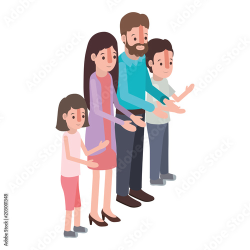 Obraz premium parents couple with son and daughter isometric vector illustration design