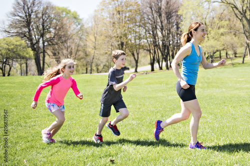 © Louis-Paul Photo, Obraz premium Parents with children sport running together outside