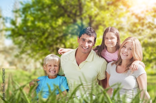 © BillionPhotos.com, Fototapeta premium Parents with cute child playing in park
