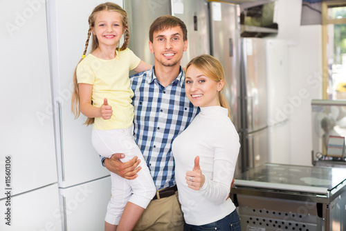 Obraz premium Parents with daughter in home appliance store