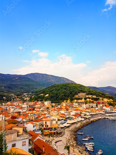 © sea and sun, Fototapeta premium parga tourist resort in greece sea beach in spring sea beach houses