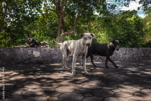 © Aler, Fototapeta premium Pariah dogs in summer garden