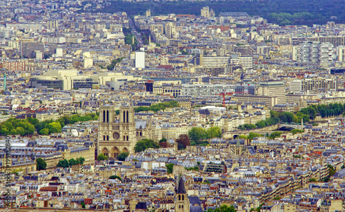 © Ioan Panaite, Obraz premium Paris city, view of Notre Dame Cathedral from Eiffel Tower