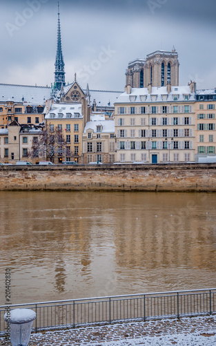 © jasckal, Naklejka premium Paris et Notre-Dame sous la neige