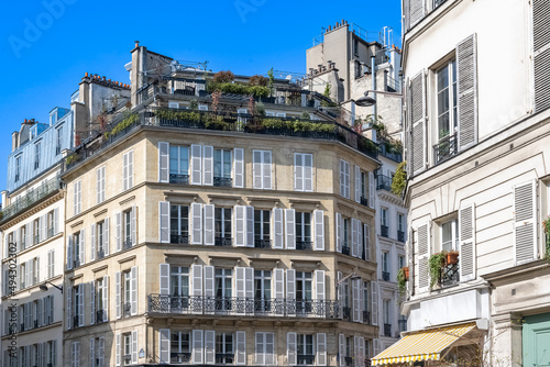 © Pascale Gueret, Fototapeta premium Paris, luxury parisian facade rue de Fleurus in the 6e arrondissement, with terraces on the rooftop