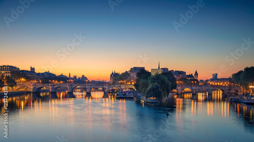 © rudi1976, Fototapeta premium Paris Panorama. Panoramic image of Paris riverside during sunrise.