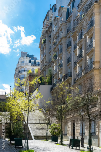 © Pascale Gueret, Naklejka premium Paris, romantic staircase in Montmartre, typical buildings