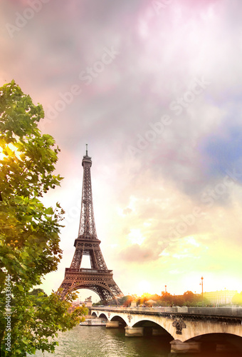 © Kotkoa, Naklejka premium Paris sunset background. Eiffel Tower, France