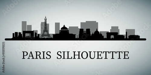 © Dima, Naklejka premium Paris. The city skyline. Silhouettes of buildings. Vector on a gray background