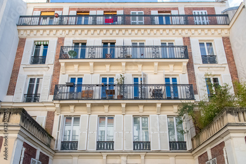Fototapeta premium Paris, typical facade and windows, beautiful building in Montmartre