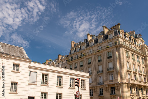 Fototapeta premium Paris, typical facades and street, beautiful ancient buildings boulevard des...