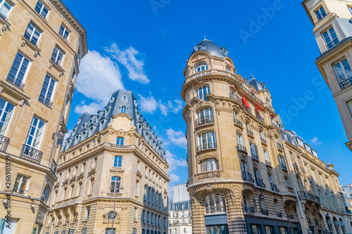 Obraz premium Paris, typical parisian facades rue des Petits-Champs in the 2nd district, chic area