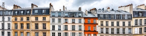 Fototapeta premium Parisian Apartment Buildings Architectural Exterior Facade Row Houses Cityscape