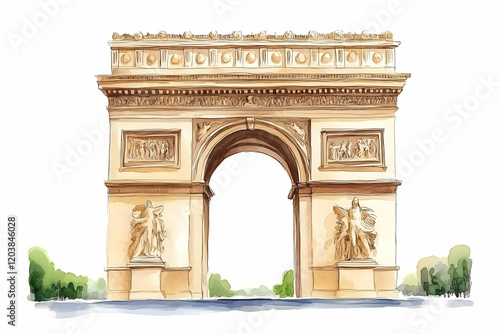 Fototapeta premium Parisian Arc de Triomphe watercolor illustration