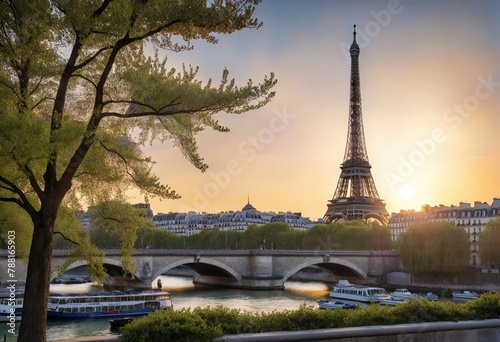 Fototapeta premium Parisian Beauty: A Tourist's Guide to the City of Lights, Watercolor Design