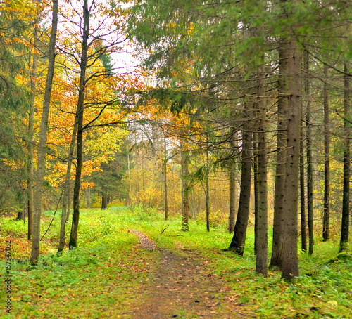Obraz premium Park and walkway at autumn.
