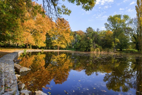 © OttoPles, Fototapeta premium Park in the early fall with the lake