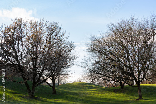 Fototapeta premium Park landscape during a a sunny winter afternoon
