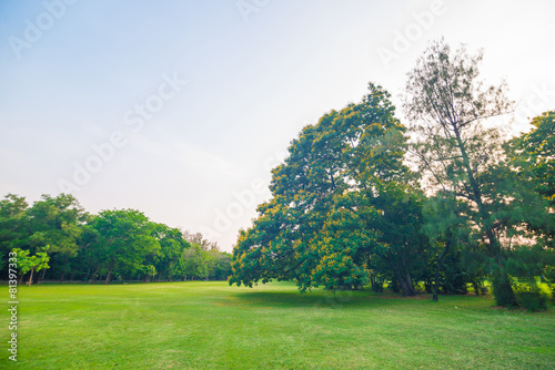 Naklejka premium Park miejski w zielonym polu, piękny trawnik