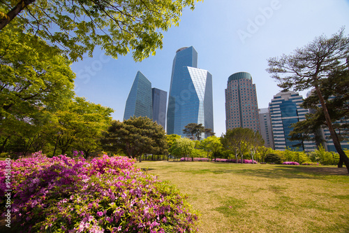 © yo camon, Obraz premium Park near office buildings in Seoul