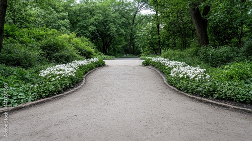 Obraz premium Park Pathway lined with white flowers