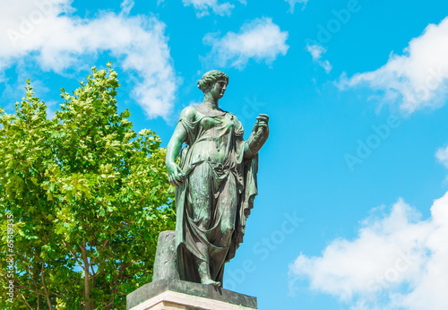 © allegro60, Obraz premium Park sculpture of ancient goddess with wreath in hand