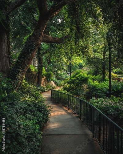 Obraz premium Park walkway, lush greenery