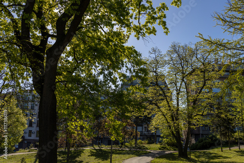 © Sergei, Fototapeta premium Park with a large tree in the foreground