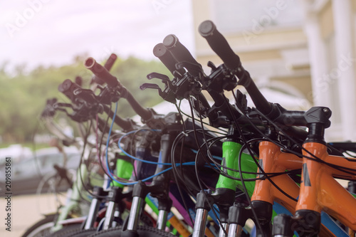 © Юлия Усикова, Fototapeta premium Parked bikes on a parking lot.