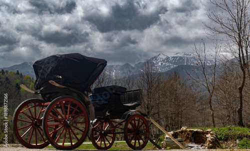 © atha, Fototapeta premium Parked wagon in mountain landscape, Greece