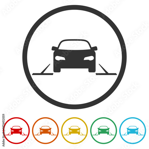 © sljubisa, Obraz premium Parking lot design icon. Set icons in color circle buttons